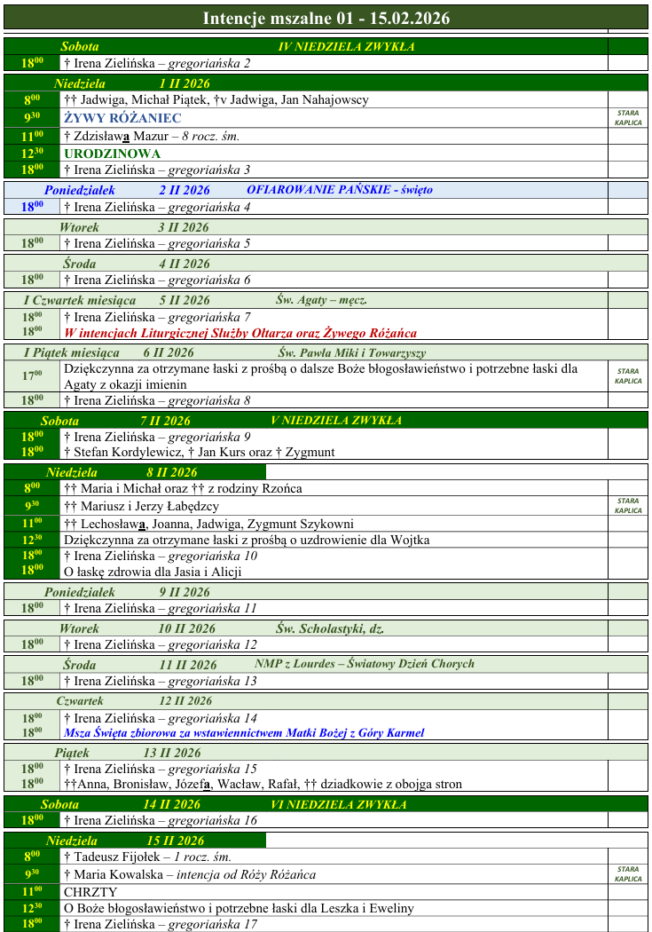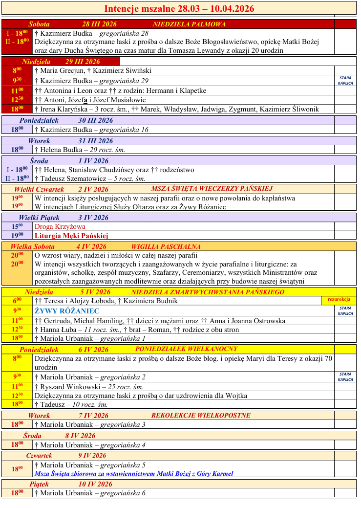 SAKRAMENTYMSZE ŚW. I NABOŻEŃSTWA CHRZEST POKUTA I KOMUNIA ŚWIĘTA BIERZMOWANIE NAMASZCZENIE CHORYCH MAŁŻEŃSTWO WSPÓLNOTYRADA PARAFIALNA DOMOWY KOŚCIÓŁ CARITAS PARAFIALNA ŻYWY RÓŻANIEC MINISTRANCI I LEKTORZY prywatne zasoby LSO ZESPÓŁ I SCHOLA PATRONKI DOBREJ ŚMIERCI SZKAPLERZNA KATOLICKIE STOWARZYSZENIE MŁODZIEŻY BIERZMOWANYCH Dla Animatorów OCHRONA MAŁOLETNICHStandardy ochrony